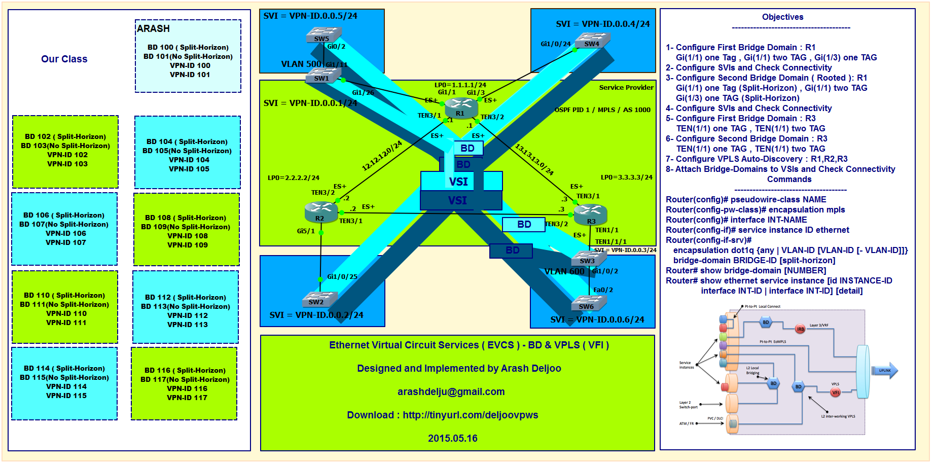 سناریوی Ethernet Virtual Circuit Services ( EVCS ) - BD-VFI v2.0 به پیوست میباشد. با تشکر از مهندس آرش دلجو مدرس رسمی دوره های سیسکو که این سناریو رو تهیه دیدن