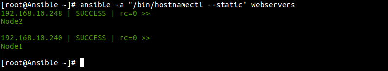 # ansible -a "/bin/hostnamectl --static" webservers