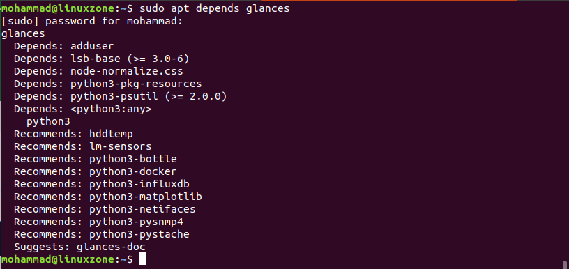 بعضی اوقات در حین نصب پکیج ها، شما ممکن است خطاهایی مربوط به ناقص یا مشکل دار بودن پیش نیازهای پکیج دریافت کنید، برای چک کردن اینکه شما این مشکل را دارید یا خیر، دستور زیر را به همراه نام پکیج اجرا کنید.