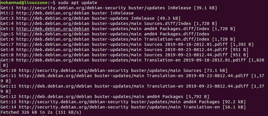 این دستور به شما کمک می کند لیستی از پکیج ها را از ریپازیتوری های مختلف موجود در سیستم تان دانلود کنید و در صورت وجود ورژن جدید پکیج ها و پیش نیازهایشان، آنها را به روز رسانی کنید.
