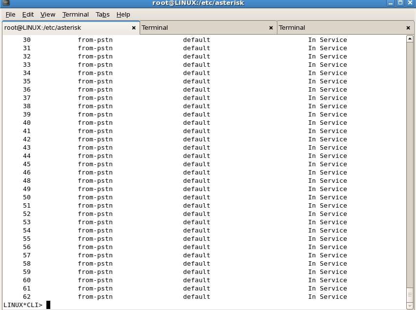 سپس وارد کنسول Asterisk شده و دستور dahdi show channels را اجرا کنید.
